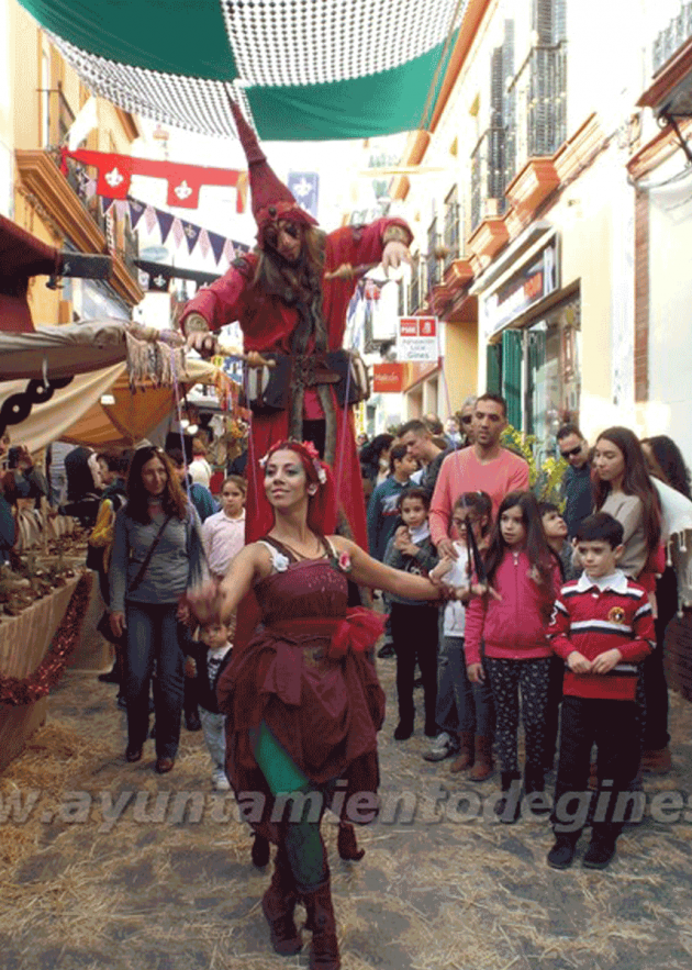 Organizado por la delegación de Festejos del Ayuntamiento bajo el lema “Gines a la luz de la Navidad”, el Mercado volvió a llenar de colorido y diversión tanto el Paseo Juan de Dios Soto como la calle Real y la Plaza de España, que durante tres días regresaron al medioevo con una perfecta ambientación a base de música, banderolas, gallardetes, puestos y personajes de lo más variopinto, en un apasionante viaje en el tiempo a través de numerosas actividades, espectáculos y stands de todo tipo.
